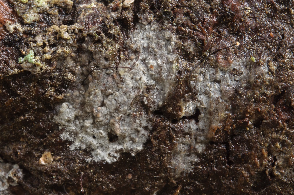 Globulicium hiemale ist ein interessanter Fall für mich. Ich kannte die Art lange Zeit nur aus der Literatur, bis ich vor einiger Zeit zufällig mal auf schöne Fotos davon gestoßen bin – da war mir schon klar, dass ich sie bereits sehr oft auf Fichtenästen im Luftraum gesehen habe, jedoch hielt ich diese Flecken nie für einen interessanten Rindenpilz und habe sie deshalb früher nie mitgenommen.