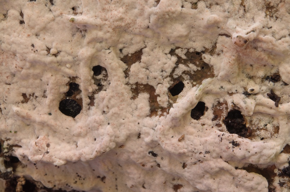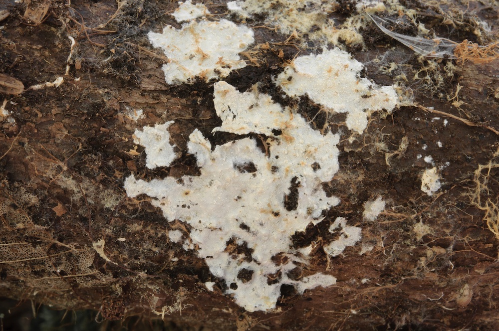 Botryobasidium intertextum: Eine seltene Art, die man am ehesten in naturnahen Fichtenwäldern antrifft. Auf morschen Picea-Holzstücken.