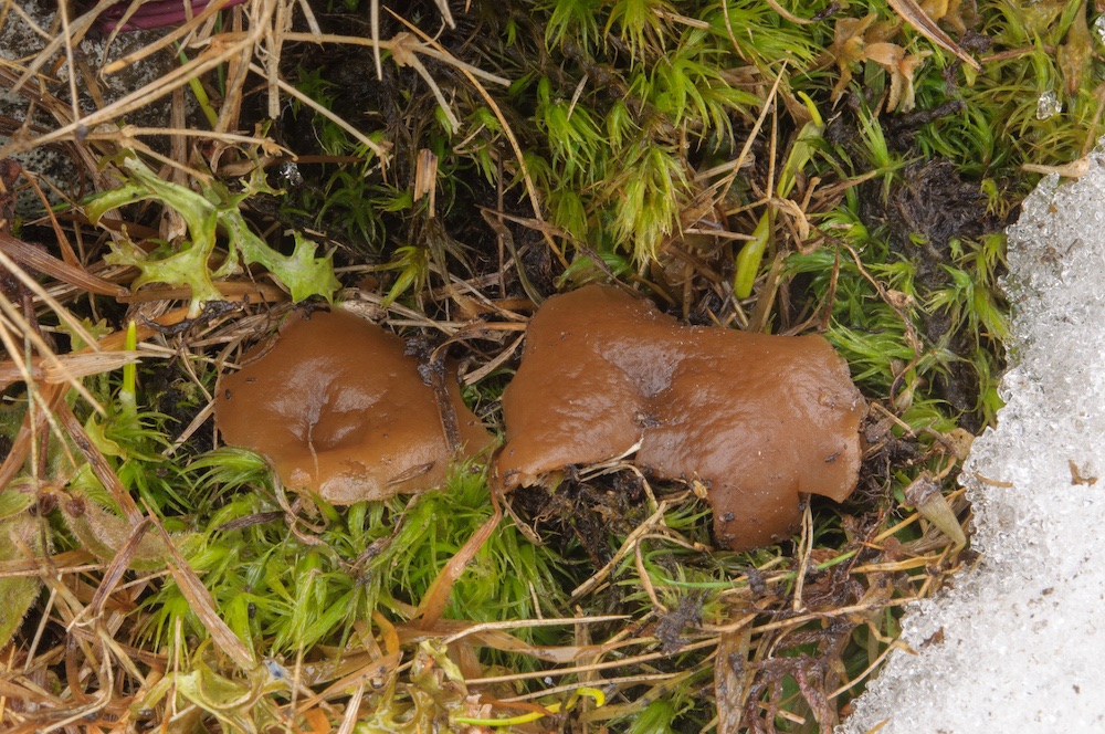 Peziza ninguis sensu Hohmeyer (1986): Am Rand von Schneefeldern.