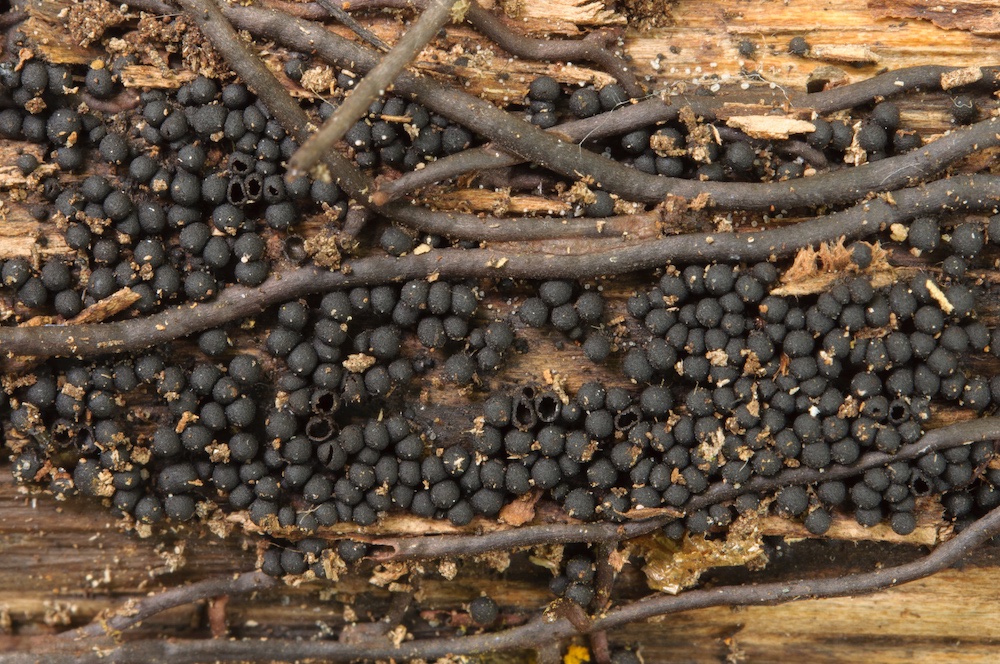 Globulicium hiemale: Charakteristisch für entrindete, noch am Baum befestigte Picea-Äste in montanen bis subalpinen, luftfeuchten Wäldern.