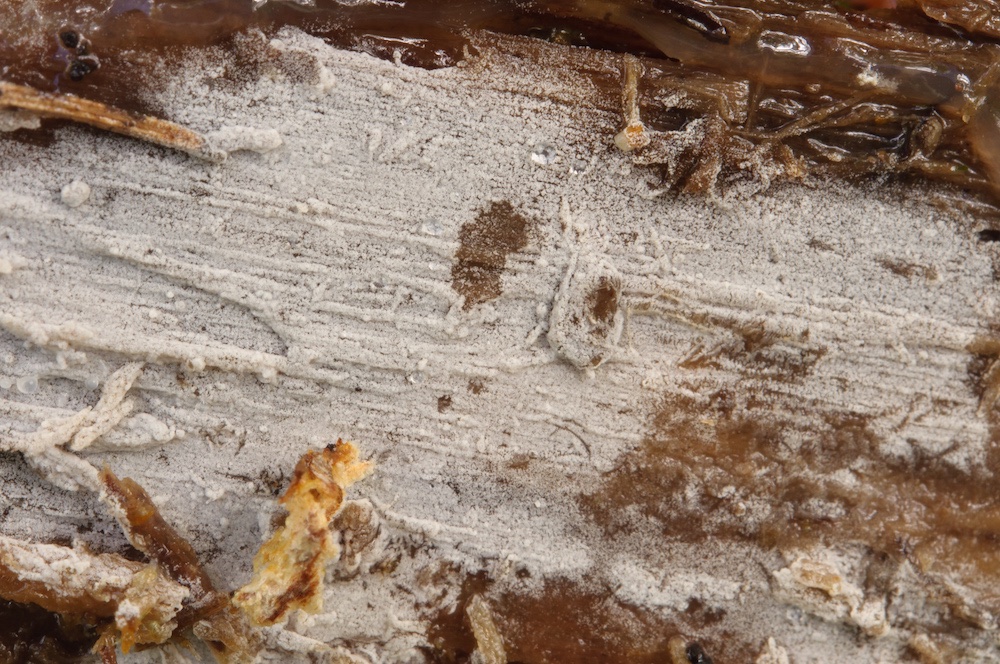 Hyphoderma incrustatum: Liegender Picea-Stamm.