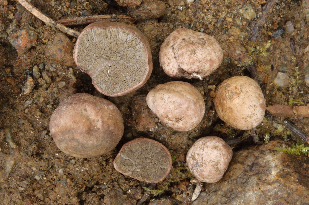 Hysterangium crassum: Von Anna mitgebracht. Wegböschung mit Moosen und niederen Stauden, bei Picea und Pinus.