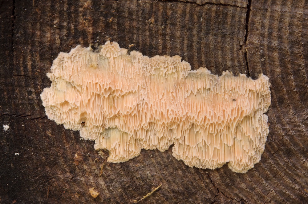 Hyphodontia arguta: Liegender Fagus-Stamm.