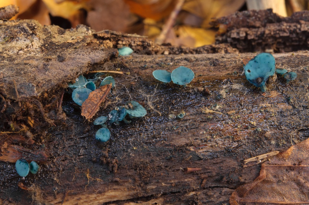 Chlorociboria aeruginascens: Liegender Fagus-Ast.