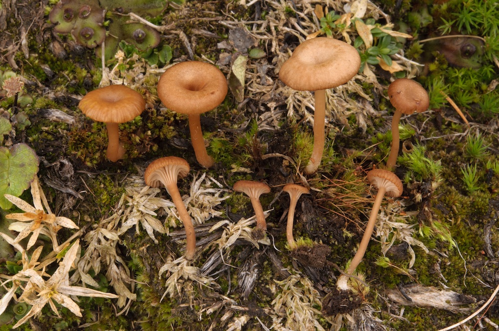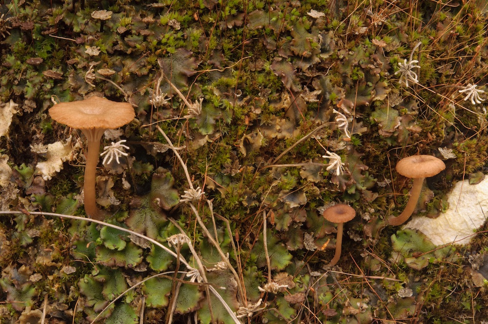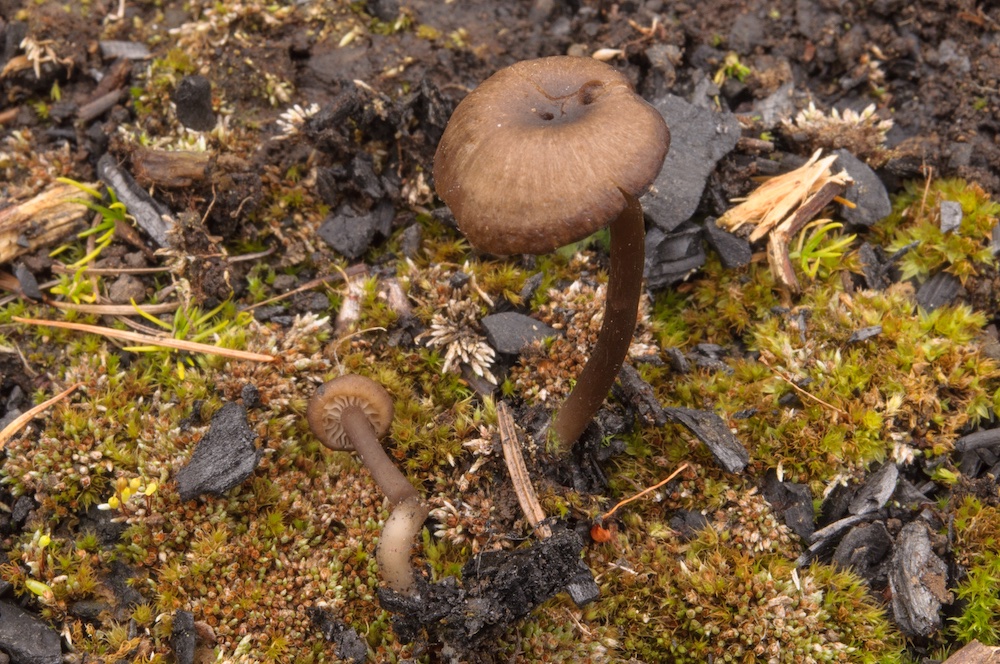 Omphalina cf. pyxidata: Auf bemoosten Brandstellen, scheinbar immer auf Marchantia wachsend. Leider kann es keine Loreleia sein, da die Fruchtkörper Schnallen besitzen.