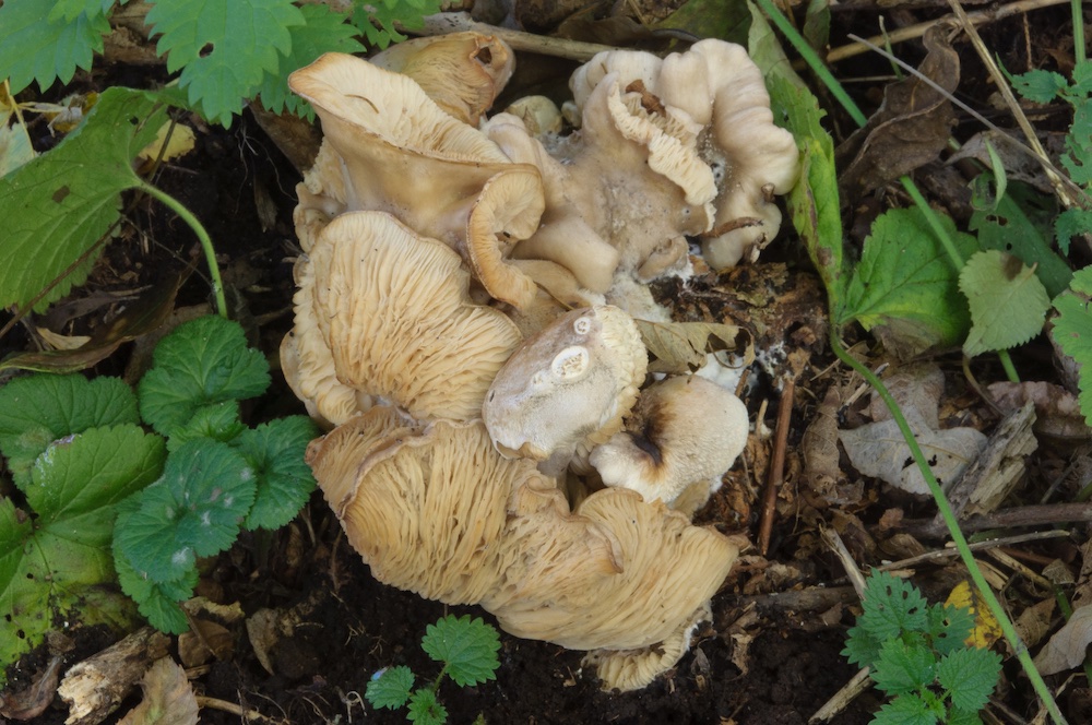 Lyophyllum sp.: Komischer Büschelrasling mit grauen Lamellen. Reichliches Wachstum an Waldrand unter Fagus, Picea etc. über Kalk.
