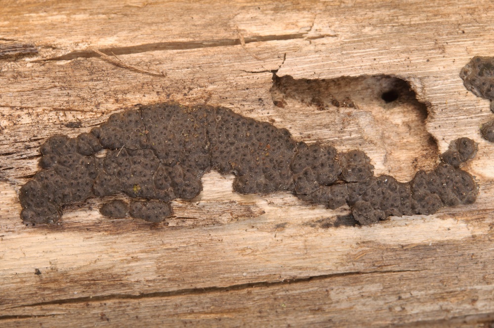 Diatrypella placenta: Liegender Alnus-glutinosa-Ast (stammt ebenfalls von einer AHP-Exkursion im März)
