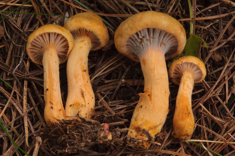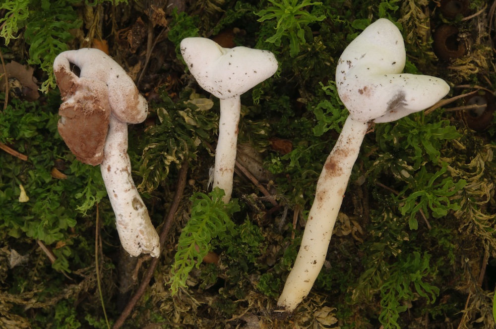 Chroogomphus helveticus mit Schimmel auf den Lamellen (wohl ein Penicillium): Bei Picea und Pinus cembra.