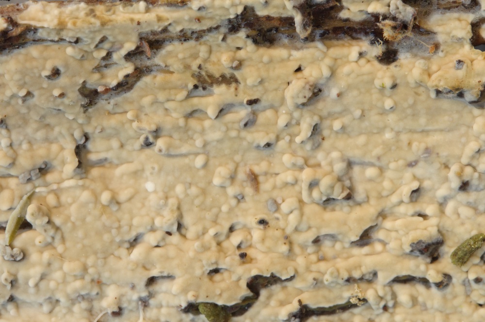Phlebia fuscoatra: Liegender Laubholz-Ast (aus Oberösterreich).
