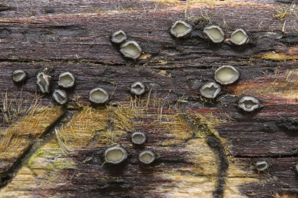 Colpoma crispum: Liegender Picea-Stamm.