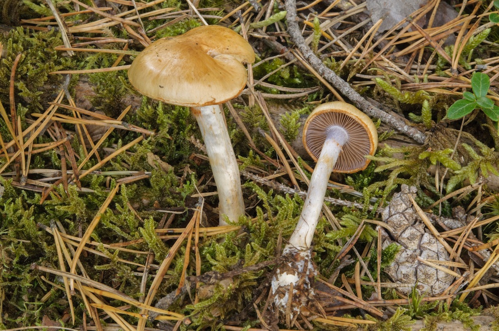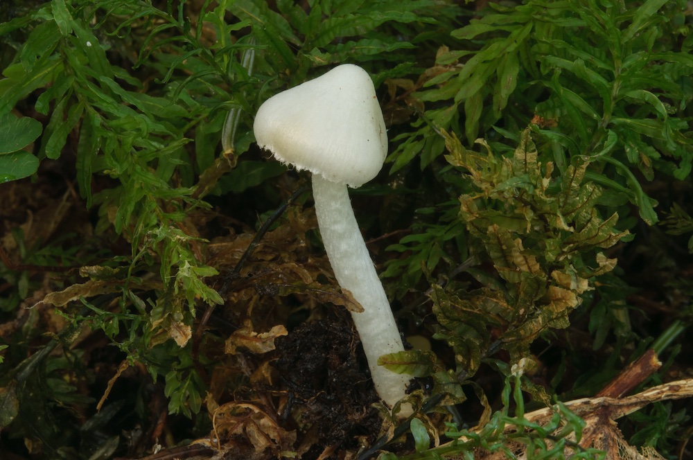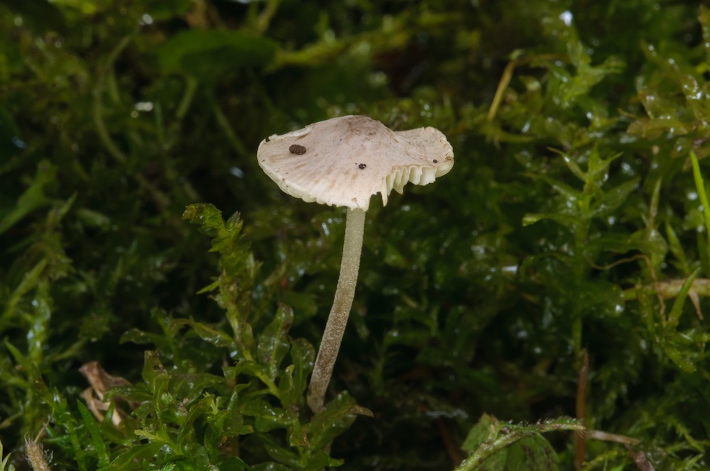 Inocybe cf. geophylla agg.: Bei Picea im feuchten Moos. Kompletter Albino – sogar die Sporen sind farblos!