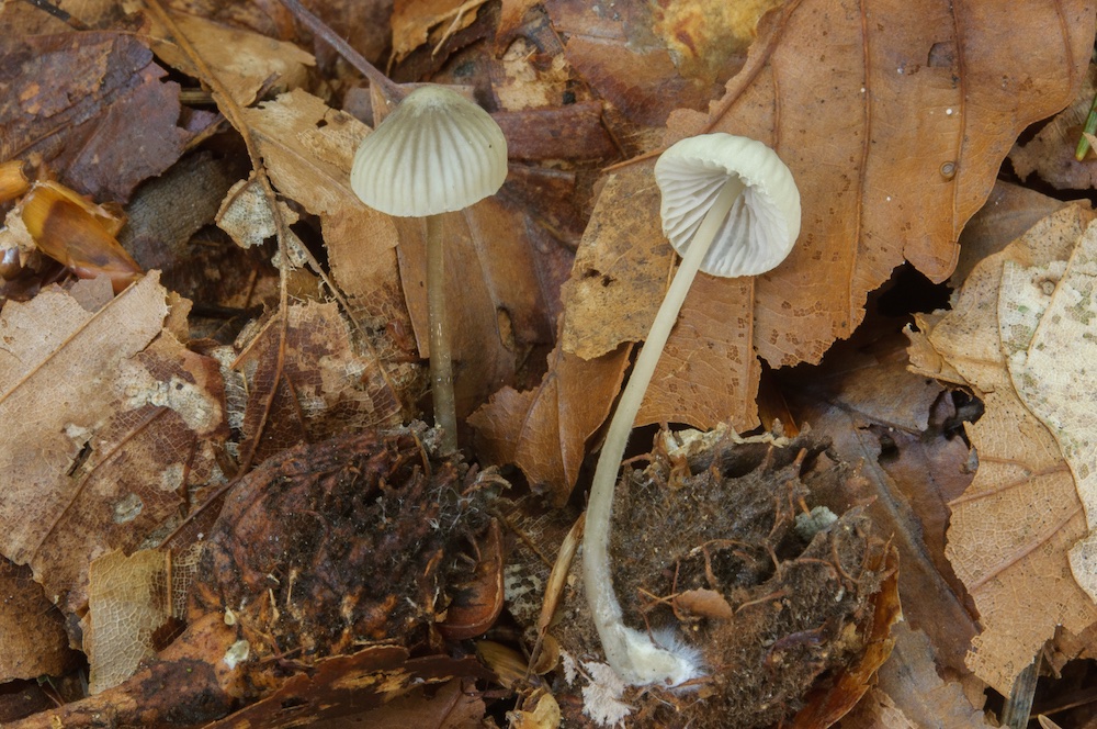 Mycena citrinomarginata: Auf Buchenfruchtschalen.