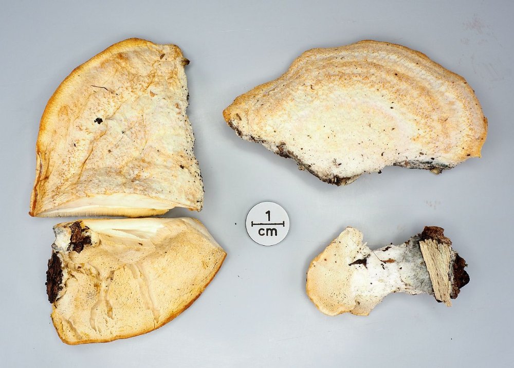 Tyromyces kmetii erkennt man makroskopisch auch gut an der schönen roten Reaktion der Hutoberfläche mit KOH. Die Art wird immer häufiger, also hast du demnächst vielleicht wieder die Chance, das zu überprüfen.