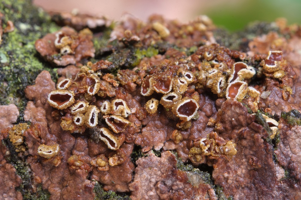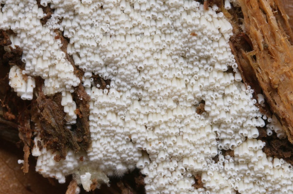 Encoelia fimbriata: Auf Hydnoporia corrugata auf liegendem Laubholz-Ast. Ohne Einträge in der Datenbank.