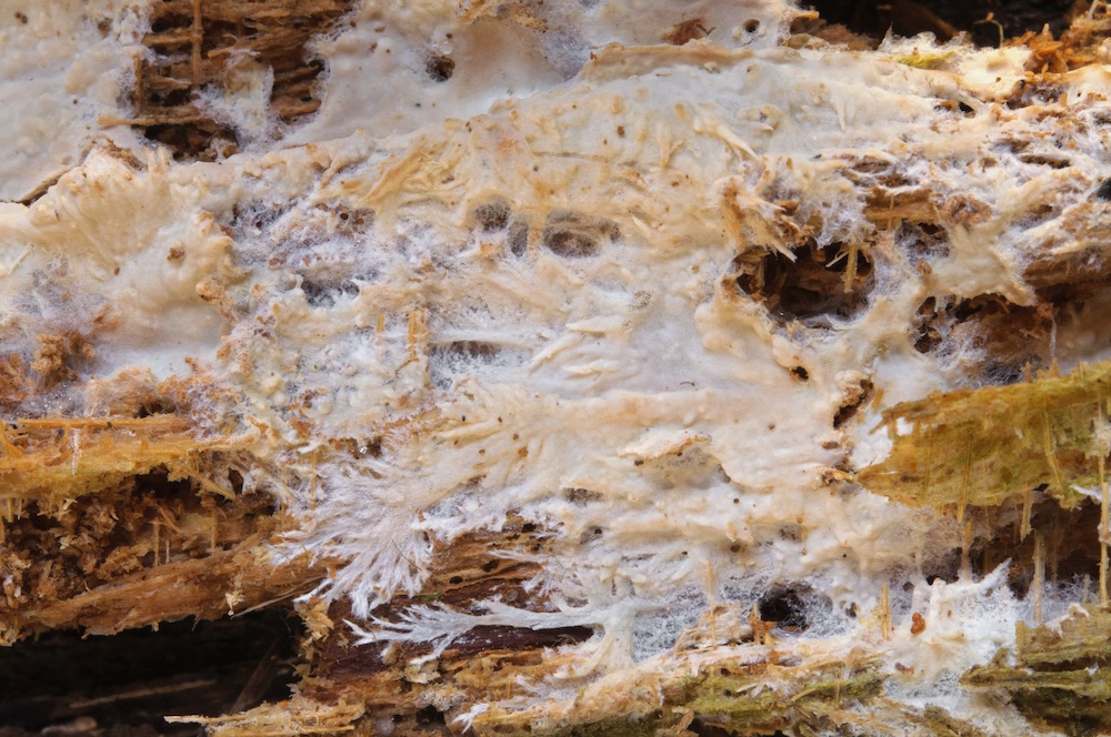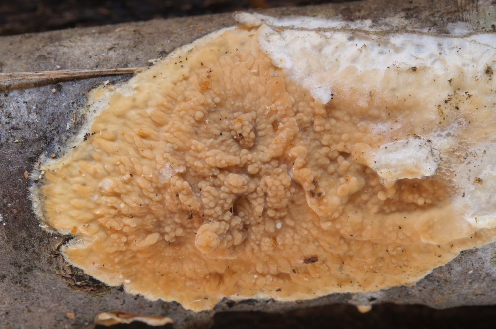 Phlebia subcretacea: Liegender Picea-Stamm.