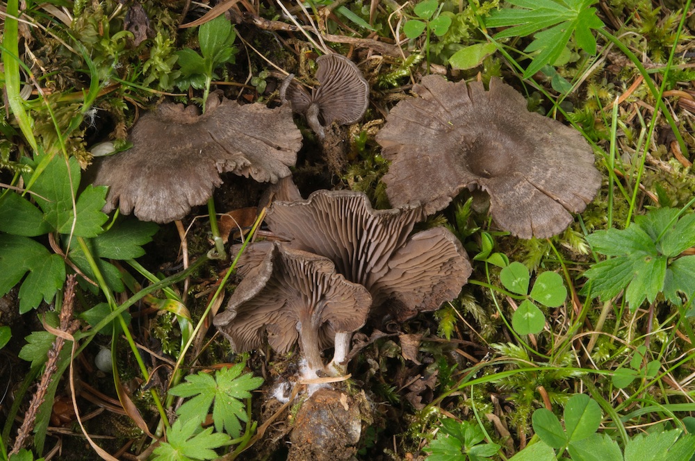 Entoloma undatum: Forststraßenböschung im Fichtenwald.