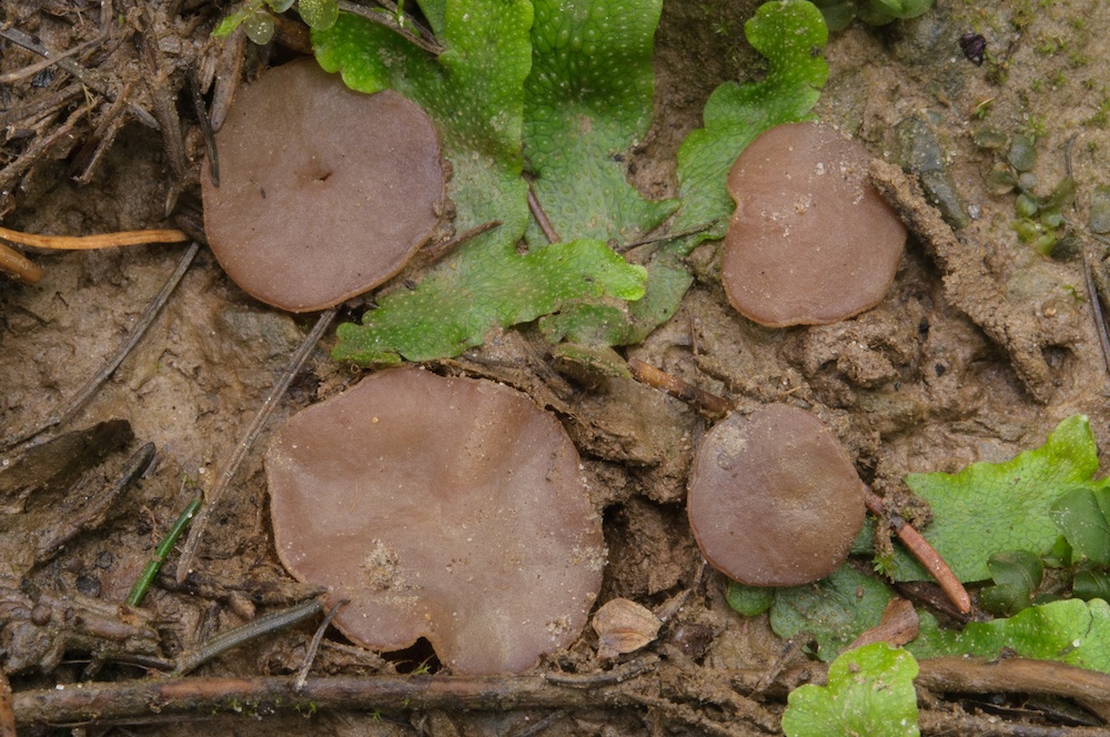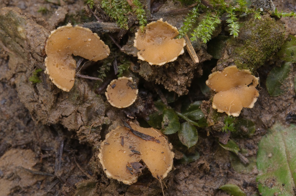 Auf sandiger Erde eines kleinen Überschwemmungsbereiches im montanen Fichtenwald gab es ein Massenvorkommen diverser Pezizales – mindestens ein Dutzend Arten, manche davon in großen Mengen fruktifizierend. Eine Auswahl: