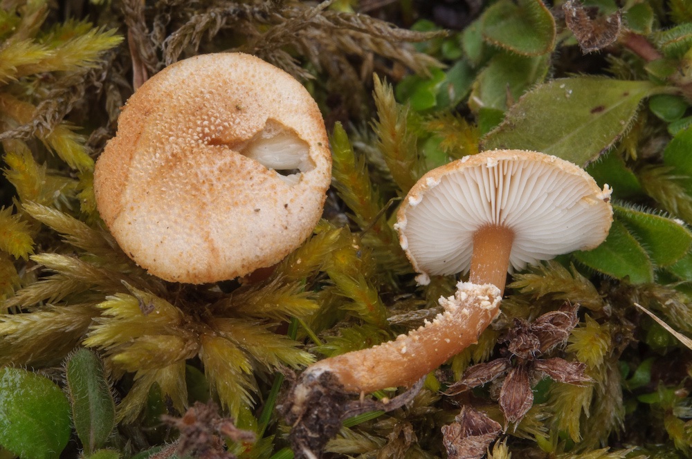 Cystodermella granulosa: Kuhweide, zwischen Moosen.