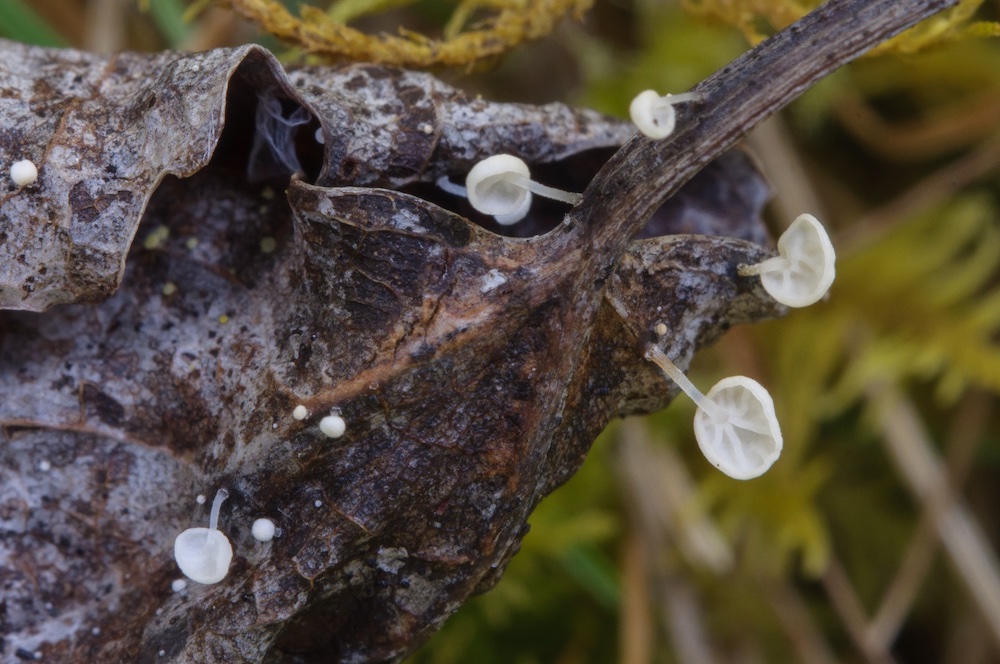Owingsia umbellifera (= Marasmius epiphyllus): Liegende Blätter von Populus tremula.