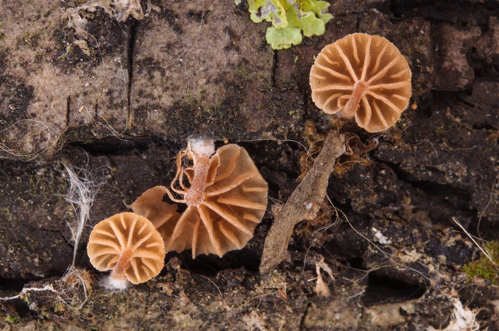 Phaeomarasmius rimulincola: Auf Laubholzast im Luftraum. Vielleicht der erste österreichische Nachweis seit Ricek. In Mitteleuropa offensichtlich sehr selten.