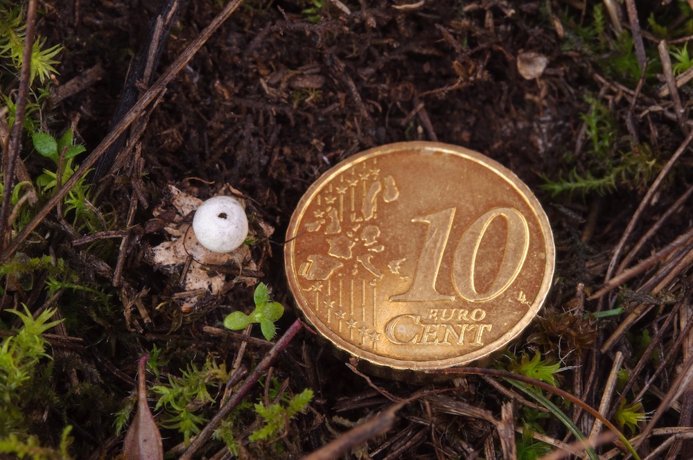 Hemimycena subtilis: Liegendes Quercus-Blatt.