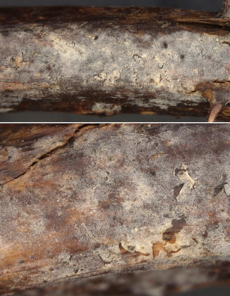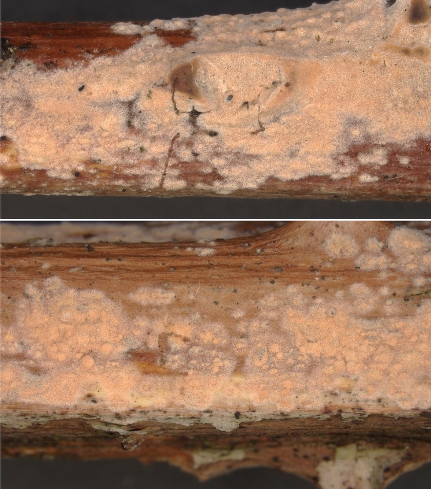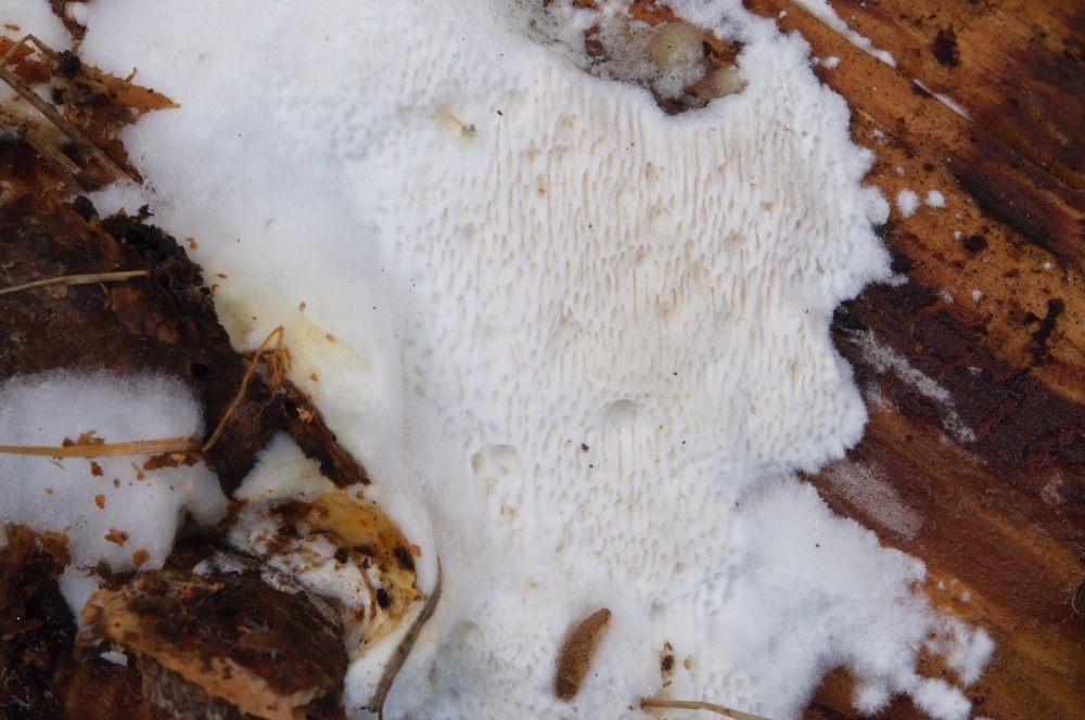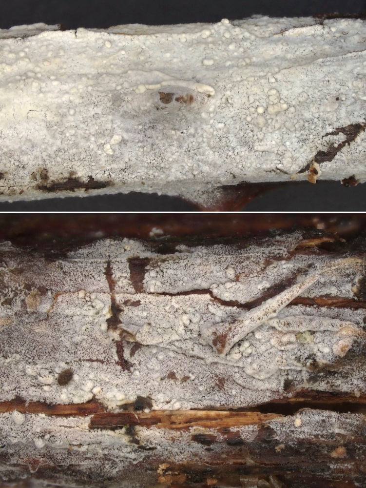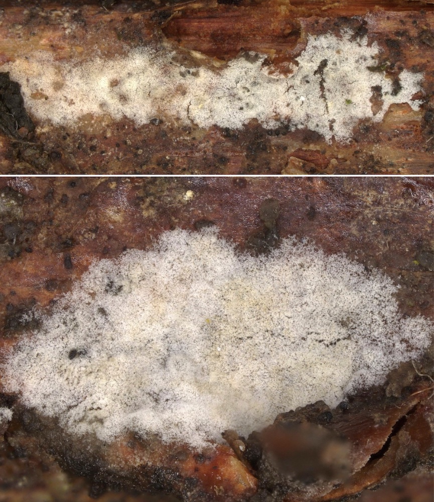 Skvortzovia furfuracea (= Resinicium furfuraceum): Ein sehr ungewöhnliches Substrat für diese Art. .