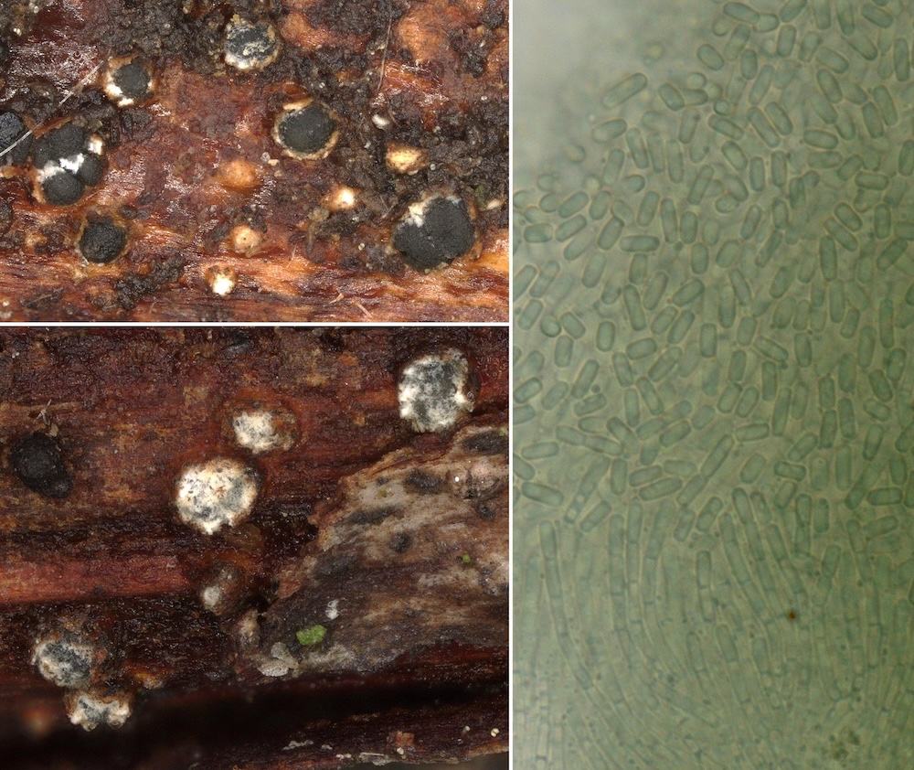 Schizoxylon compositum (Hauptfruchtform oben, Nebenfruchtform unten) .