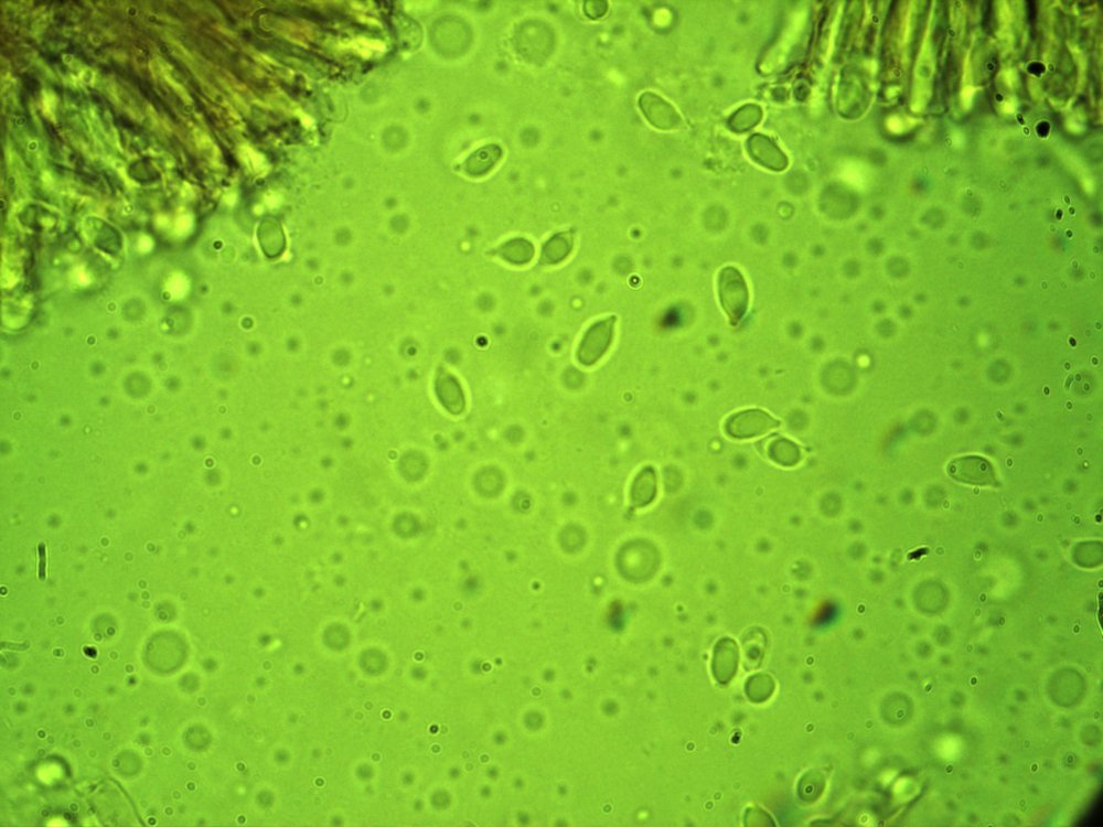 am 13.10. wurde bei einer Exkursion in der Umgebung son Sörg bei St.Veit/Glan in ca. 900 m Sh. im Nadelwald ein schwärzender Pilz gefunden, der deutlich hygrophan war. Die Mikroskopie brachte wie vermutet eine siderophile Reaktion der Basidien, die spindeligen Sporen waren nicht amyloid, wiesen oft einen großen Öltropfen auf, maßen ca. 6,5 - 9 / 4 - 5 µm und zeigten meiner Meinung nach oft eine suprahilare Depression. Zystiden habe ich keine gesehen.