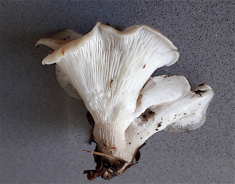 mmh,..hast Du eventuell noch eine Nahaufnahme, bei der auch die Unterseite und der eventuell vorhandene Stiel erkennbar sind. An einer kleinen von Tieren angeknabberten Stelle kann ich weiße Lamellenreste erkennen, damit sind wir in der H. petaloides-Guppe. Die einzelnen Arten sind darin nur mit Hilfe mikroskopischer Merkmale zu bestimmen.