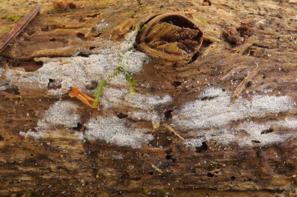 Subulicystidium longisporum: Liegender Fagus-Ast.