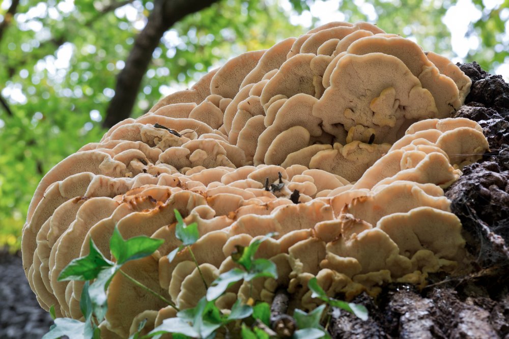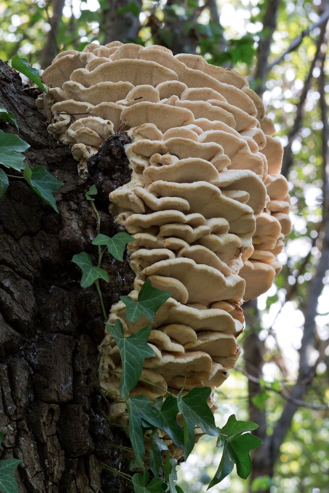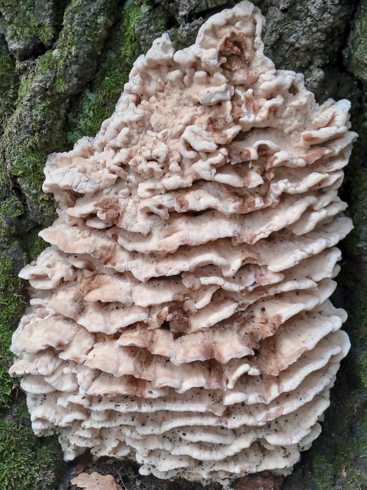 Eine schöne Überraschung beim Spaziergang im Lainzer Tiergarten am 28. 8.: Ca. 200 m nordwestlich der Nikolaikapelle erstrahlte ein wunderschöner Fruchtkörper von Climacodon septentrionalis auf Eiche. Irmgard war so freundlich und hat mir das sogar schon bestätigt