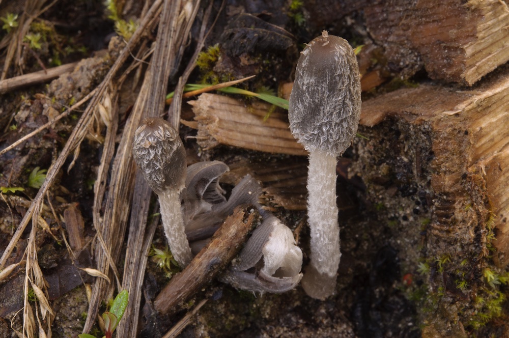 Coprinopsis lagopus: Holzreste im Boden.