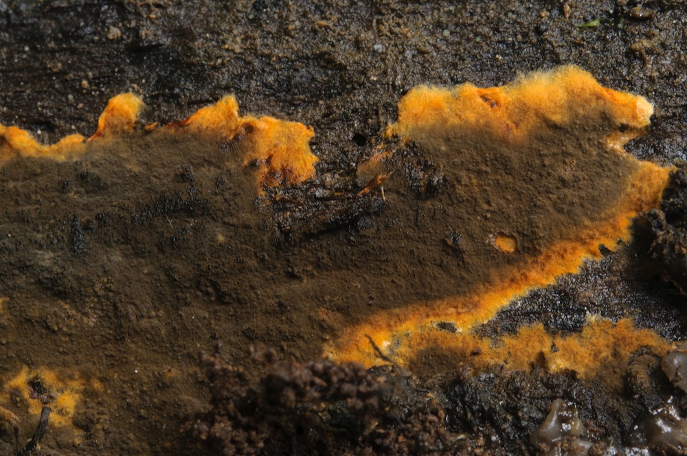 Auriporia aurulenta - Schwemmholzhaufen, Nadelholz