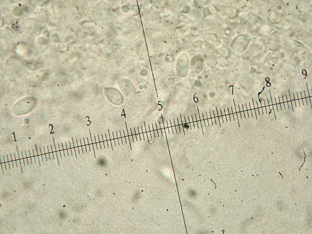 Hier war ich mir anfangs sehr unsicher, da die Pilze auf der Wiese gewachsen sind. Mikroskopisch passt aber alles für H. elongatum.