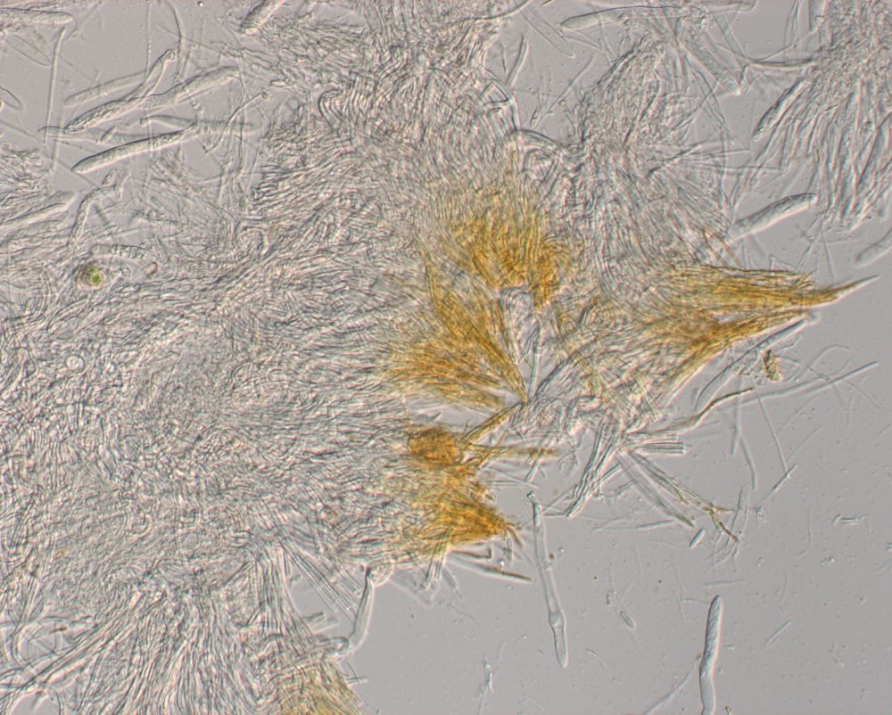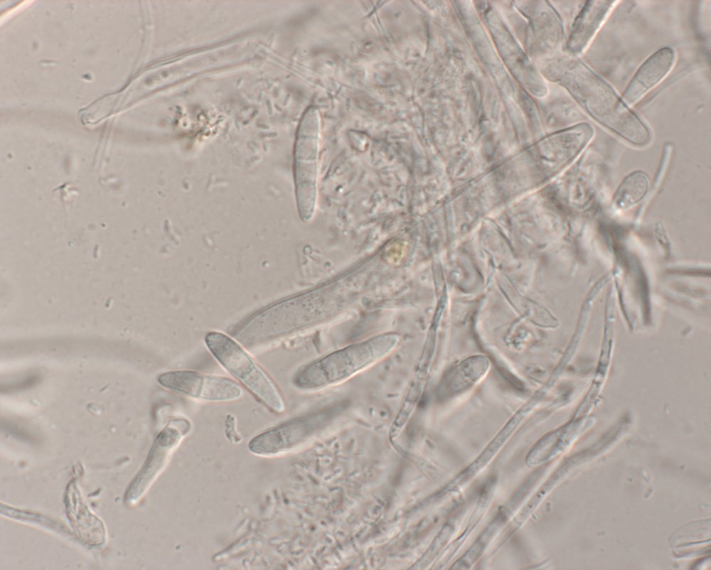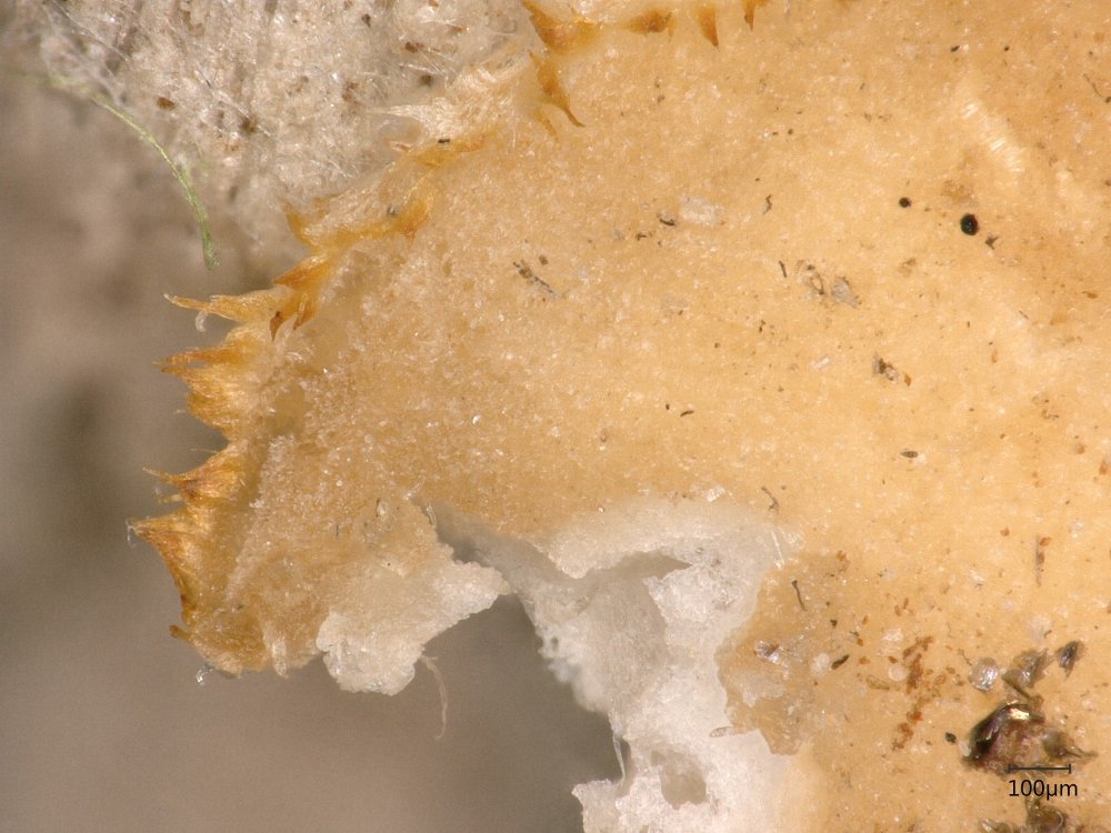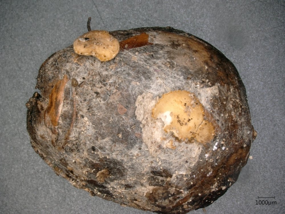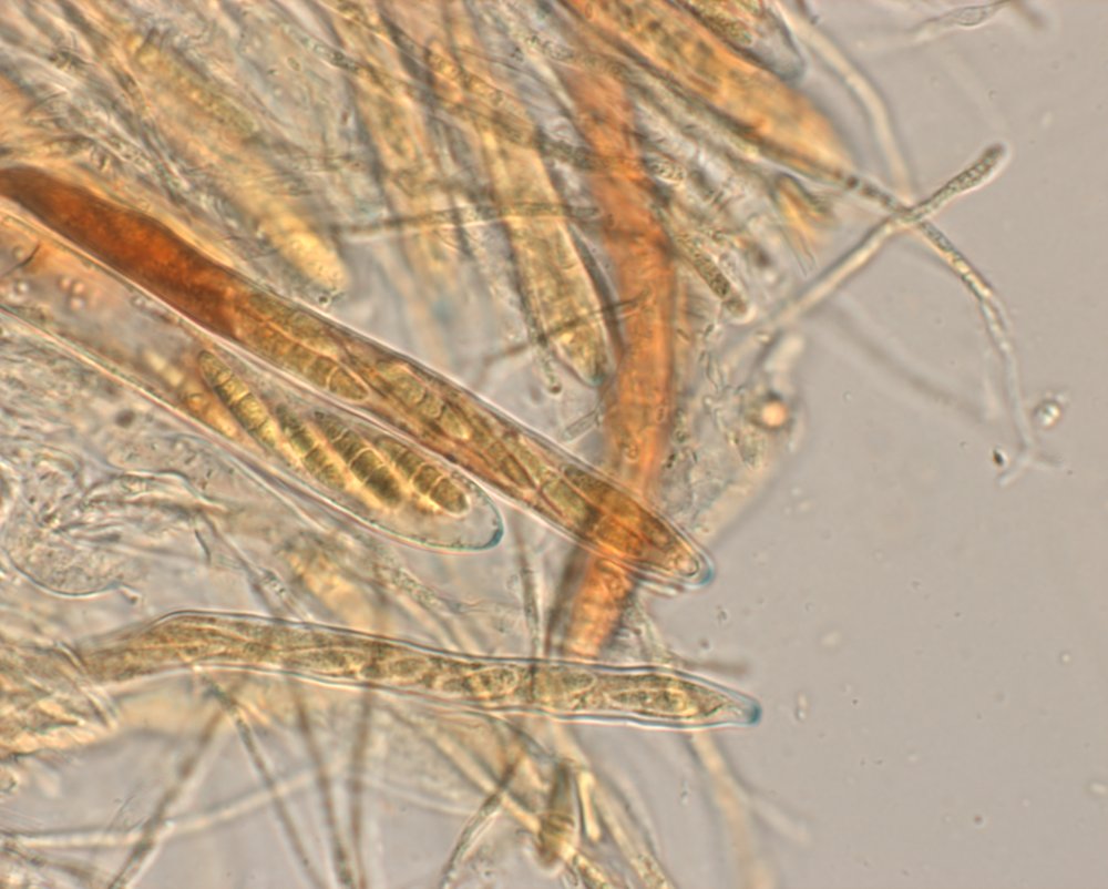 eine kleine Kollektion von Arachnopeziza aurelia in nicht mehr ganz frischem Zustand von unserer Wienerwaldexkursion am Sonntag hat mich heute länger beschäftigt, bis ich doch draufgekommen bin, was es ist. Habe zuerst das spinnwebenartige Subikulum zuwenig beachtet, aber die wenigen reifen und dreifach septierten Sporen brachten mich dann in die richtige Richtung. Die zwei Apothecien auf einer einzigen Eichel hat Gabi mit ihren Adleraugen entdeckt.