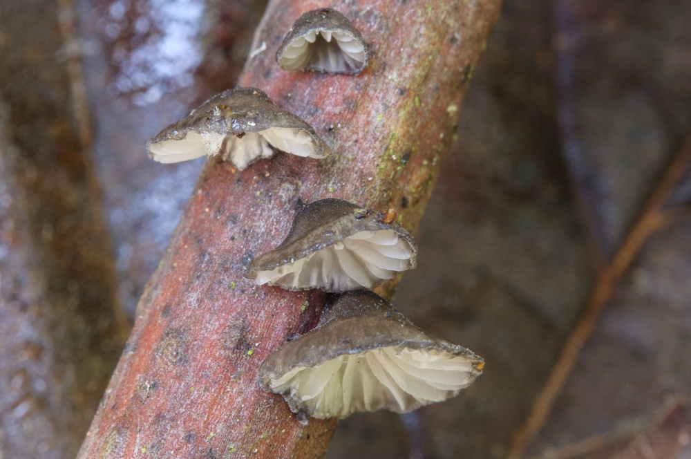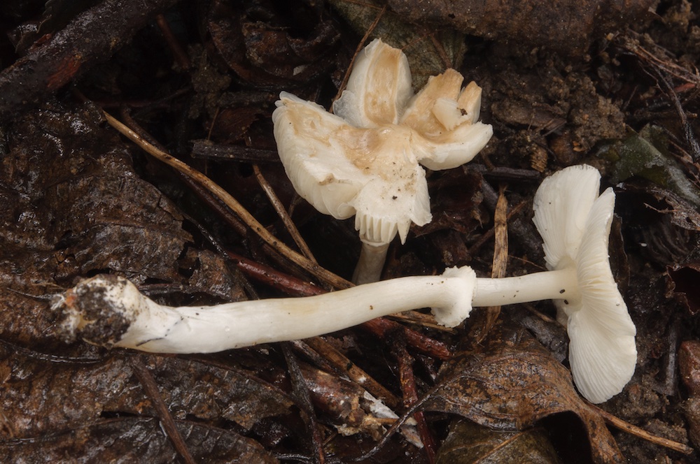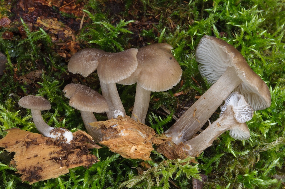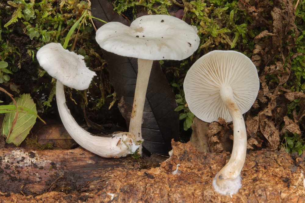 Clitocybula lacerata agg.: Morsches Nadelholzstück. Früher sind solche Kollektionen teilweise als C. abundans bestimmt worden.