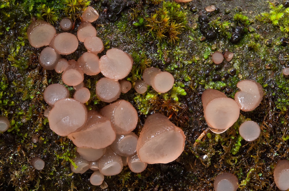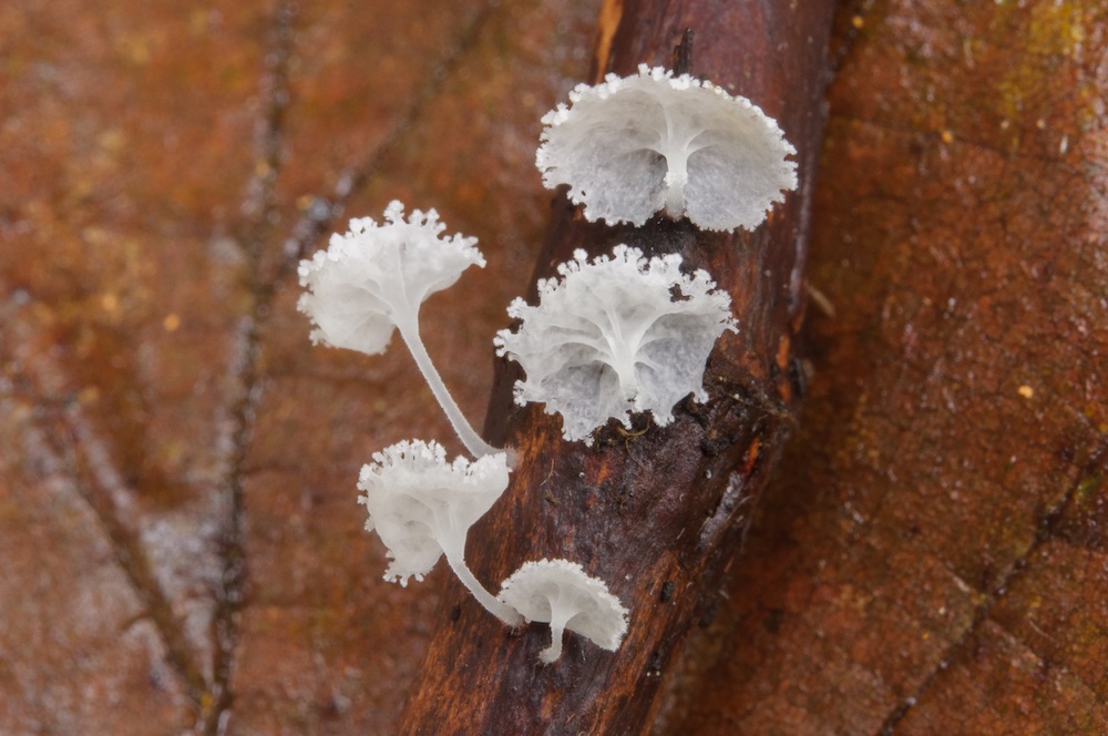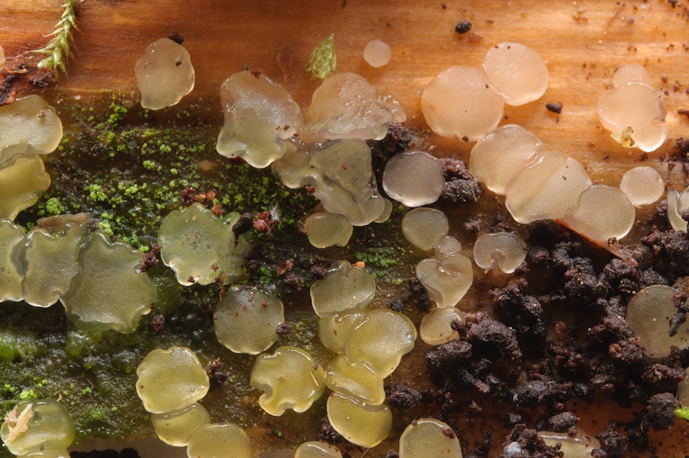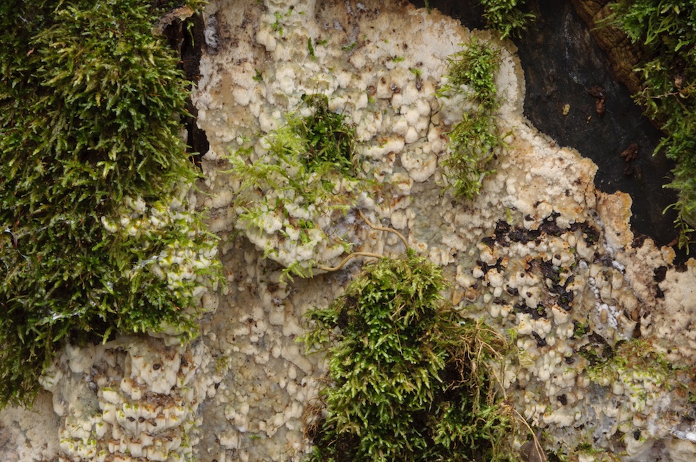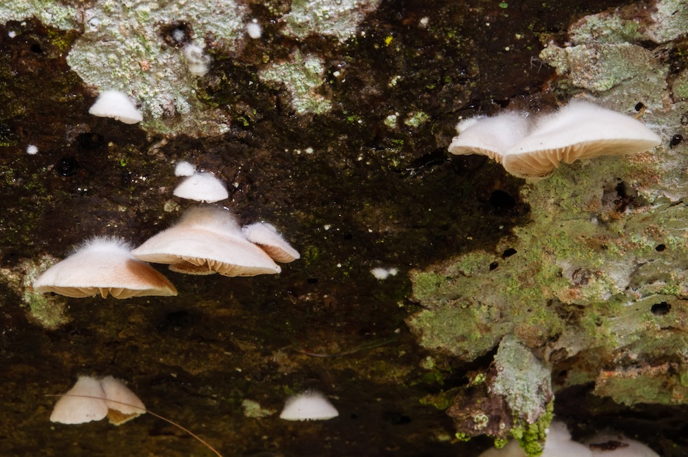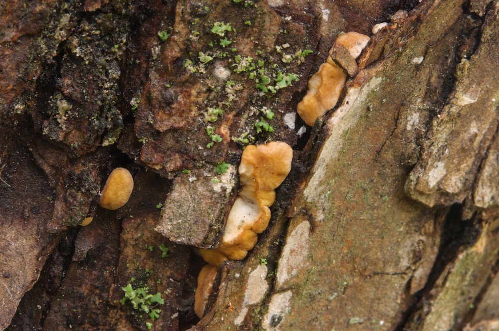 Crepidotus kubickae: Liegender Picea-Stamm.