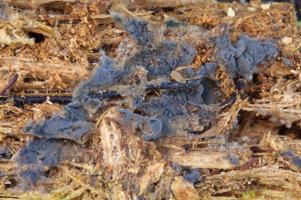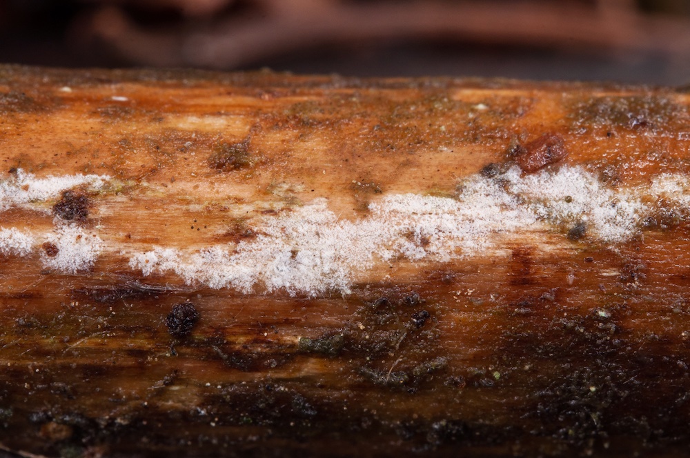 Trichoderma britdaniae: Herabgefallener, schräg hängender Salix-Ast. .