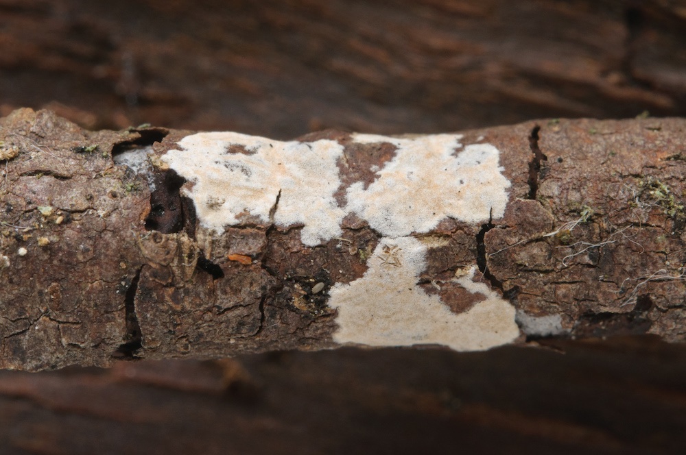 Peniophora lilacea: Berindeter Ulmus-Ast.