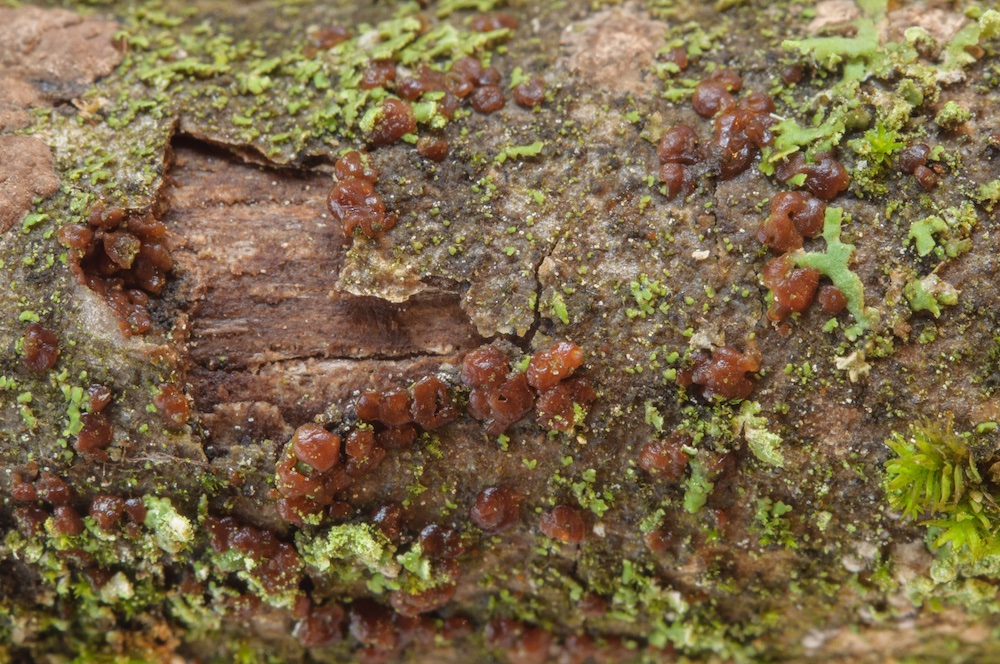 Globulisebacina badioumbrina: Liegende Fraxinus-Äste. Für nähere Informationen zu dieser Art siehe auch hier. .