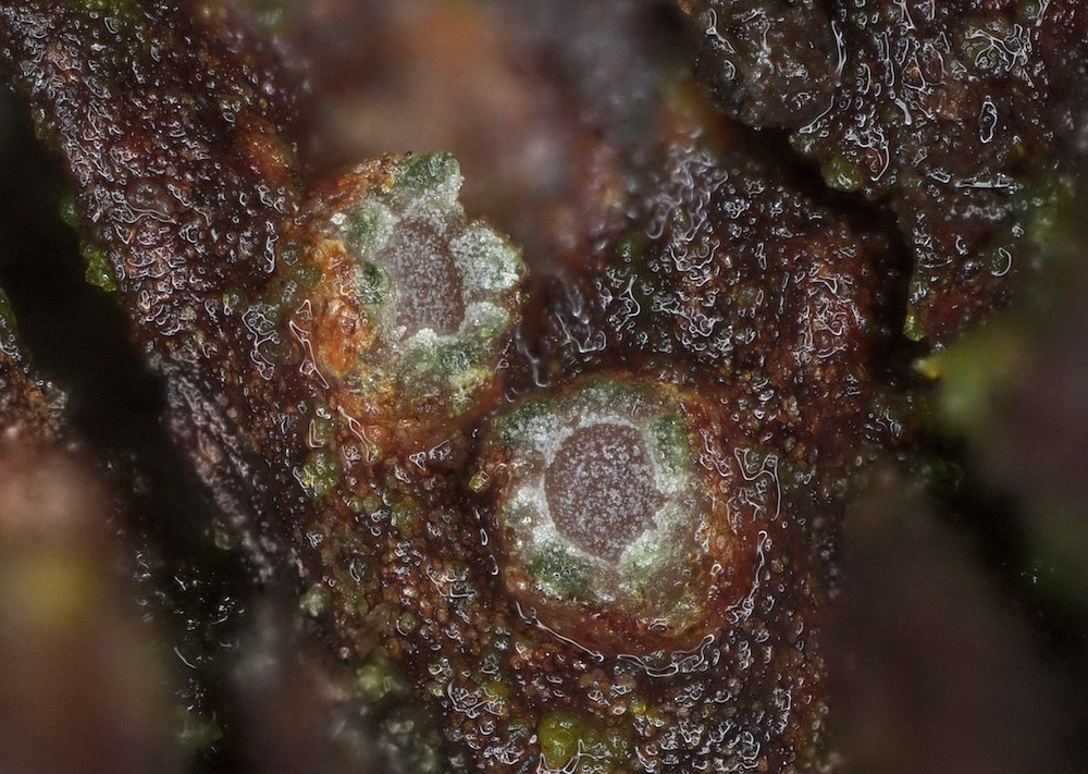 Dendrominia dryina: Quercus-Borke. Anscheinend neu für Österreich.