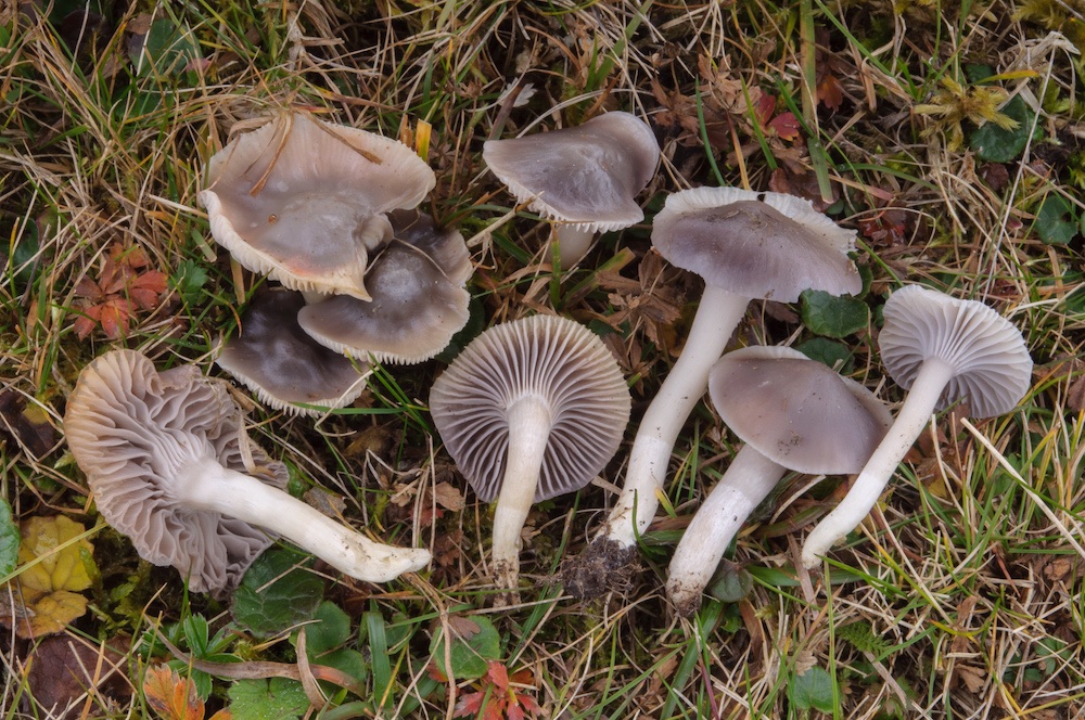 Cuphophyllus lacmus: Auf nährstoffarmen Hügeln auf einer Kuhweide.