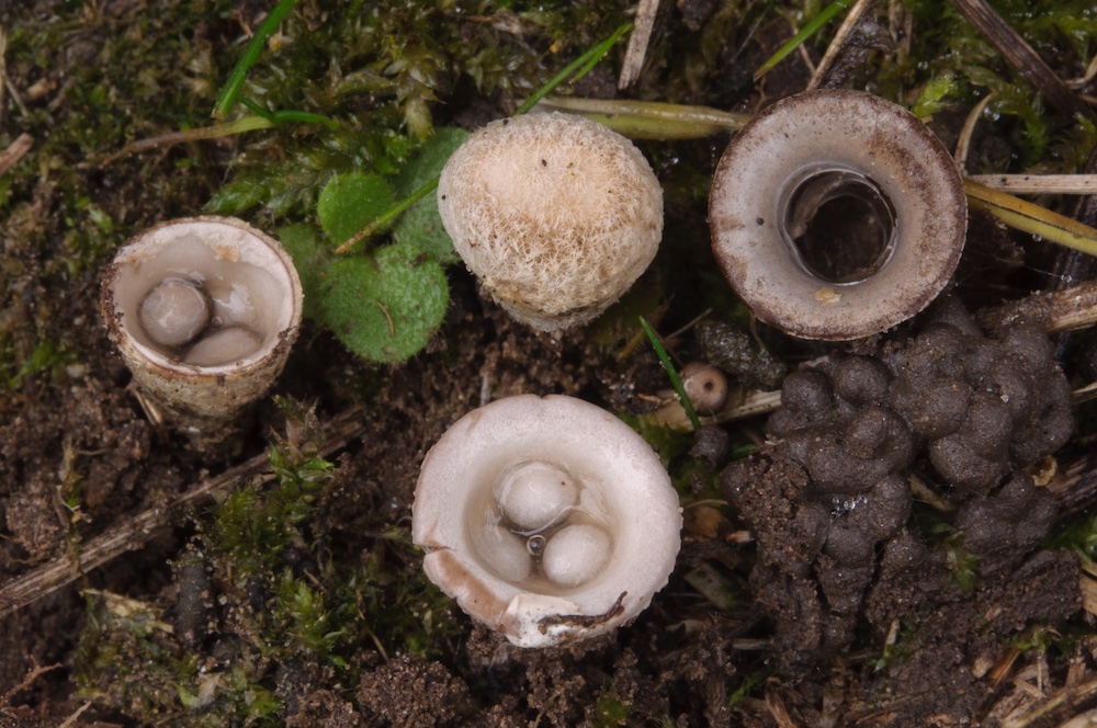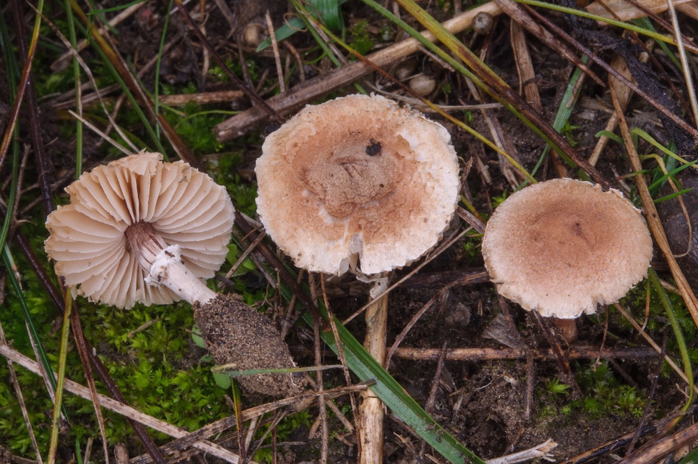 Panaeolus cinctulus: Kalktrockenrasen (oben) und Kuhflade (unten). Der obere Fund könnte aufgrund der Ökologie zu P. dunensis gestellt werden, wobei es sich dabei wohl um ein noch nicht abschließend geklärtes Taxon handelt.