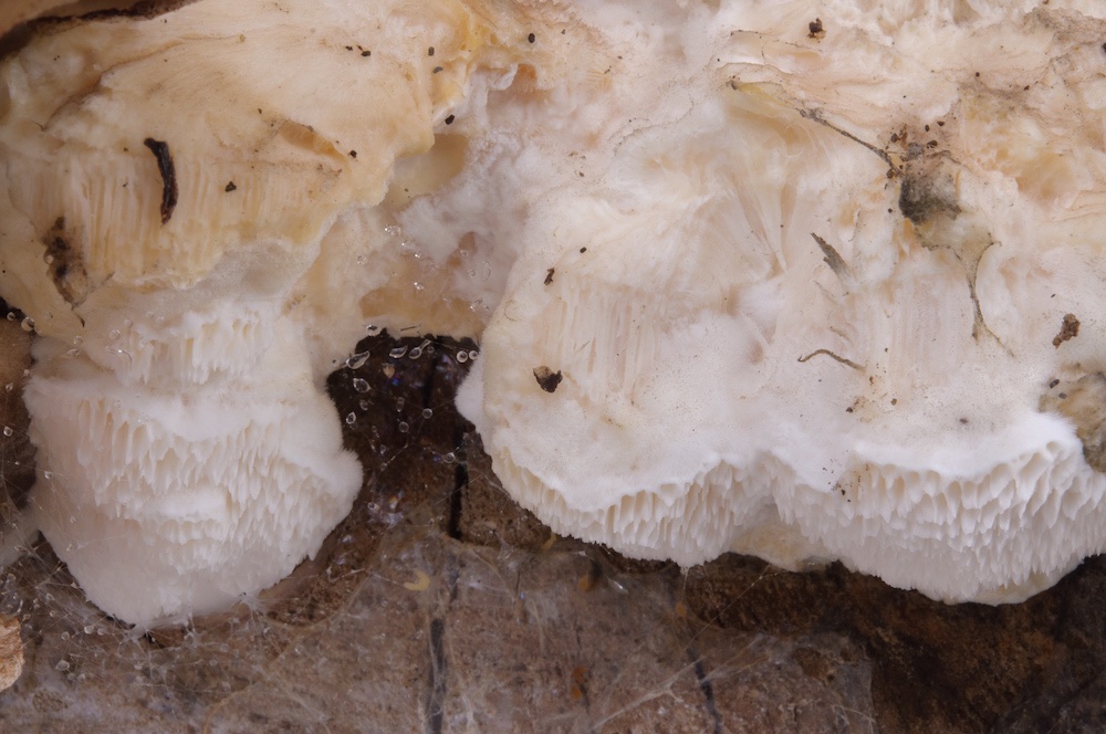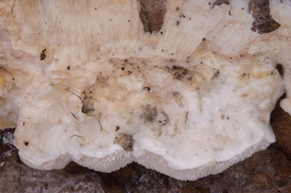 Spongipellis cf. delectans: Liegender Stamm von Populus nigra.