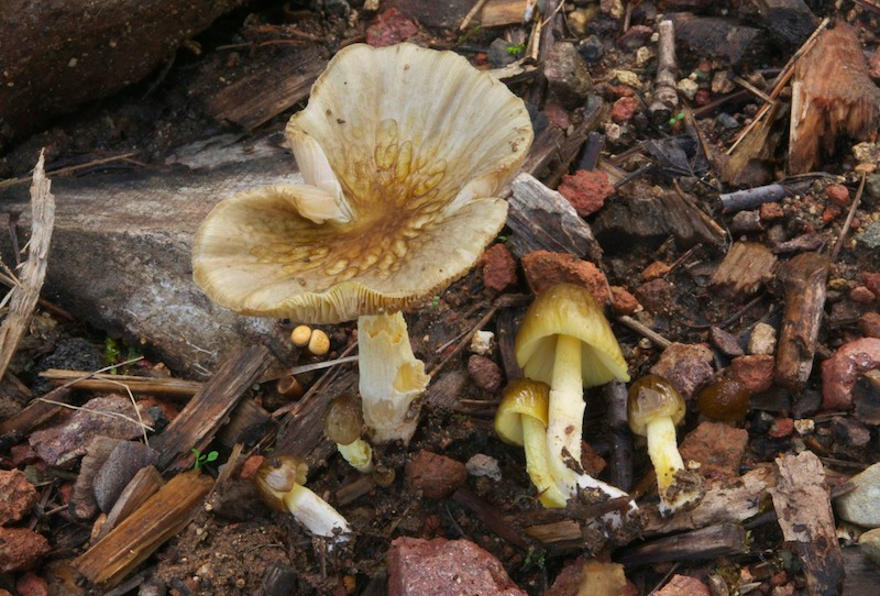Insgesamt sehe ich also einige Abweichungen, die mich stark daran Zweifeln lassen, dass es sich bei unserer Kollektion von der Hauspflegerwiese tatsächlich um H. rigelliae handelt. Ich finde hingegen, dass die Darstellungen von H. roseascens von Ludwig (Protolog, Pilzkompendium) deutlich besser passen. Gerade die (jung) mit feinen, aufstehenden Schüppchen besetzten Hüte sowie der (schwache) Rosaton beim Austrocknen – welcher bei unserer Kollektion im Feld vorhanden war – sind hier m. E. wichtige Kriterien. Es ist aber natürlich gut möglich, dass auf der Hauspflegerwiese zwei verschiedene, wenn auch ähnliche Arten wachsen.