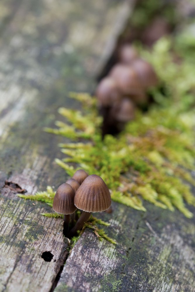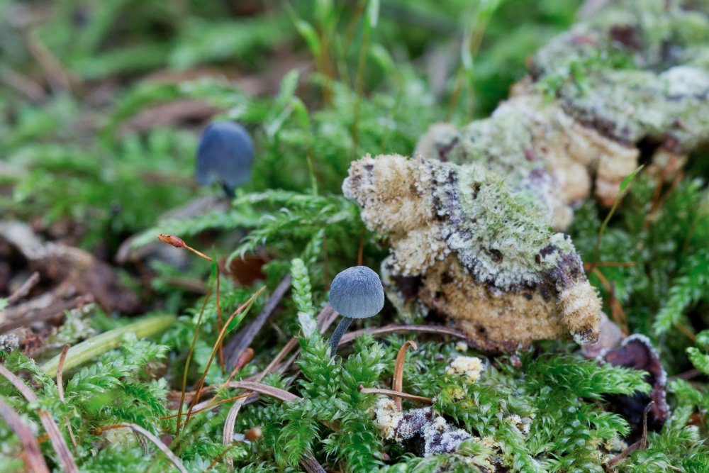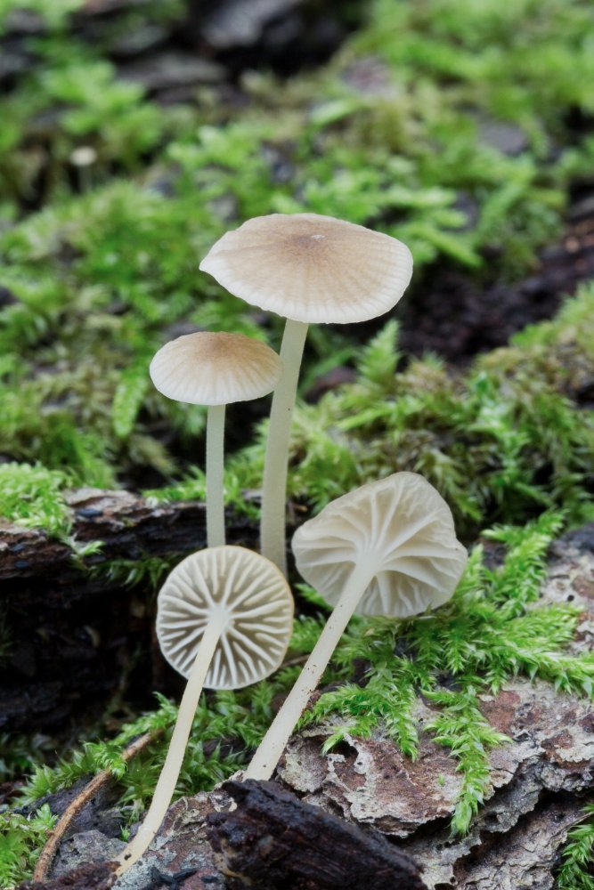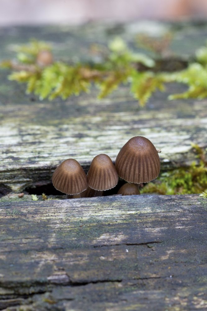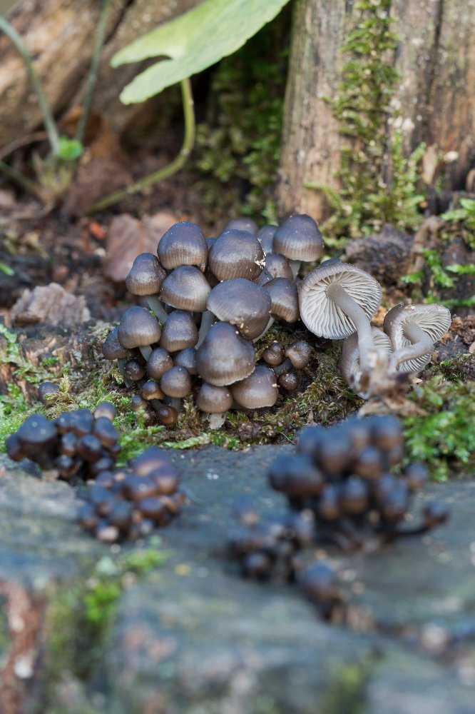 Zum ersten Mal aufgefallen sind mir die Arten Mycena maculata (Korrektur Werner: M. erubescens cf.) und Mycena purpureofusca (Korrektur Werner: zusätzlich in der Mitte: M. sanguinolenta cf.)
