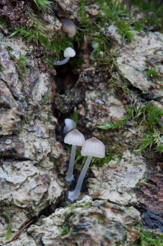 Ob die folgende Art auch zu Mycena arcangeliana gehört bin ich mir nicht mehr sicher - dürfen die Lamellen so reduziert sein? Erinnert fast ein wenig an eine Hemimycena? Bestimmungsvorschlag Werner: Mycena speirea cf: