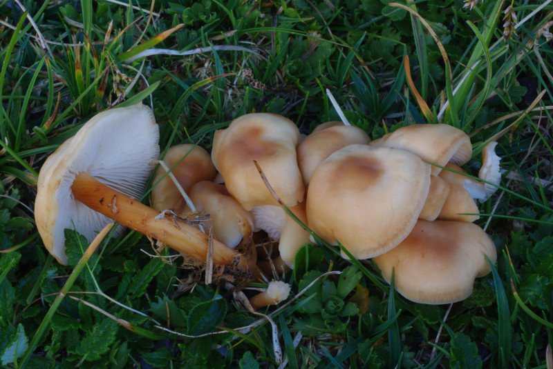 Ich erlaube mir, die Fotos aneinander zu reihen ohne Namen, da ich die meisten tatsächlich noch nicht bestimmt habe. Das Problem dort oben sind die extremen Witterungsbedingungen. Z. B. die Clitocybe spec. 3 wurde erst am Nachmittag gesammelt, nach mehreren Stunden massiver UV-Bestrahlung und Wind - entsprechend ausgetrocknet waren sie. Vormittags waren die alpinen Matten noch feucht und die Pilze frisch.