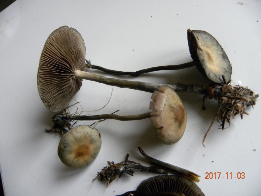 1+2 Stropharia cf. pseudocyanea (Exsikkat), ohne Ring, einzeln stehend, zwei Standorte: 47.575009, 16.015504; 47.567282, 15.935741