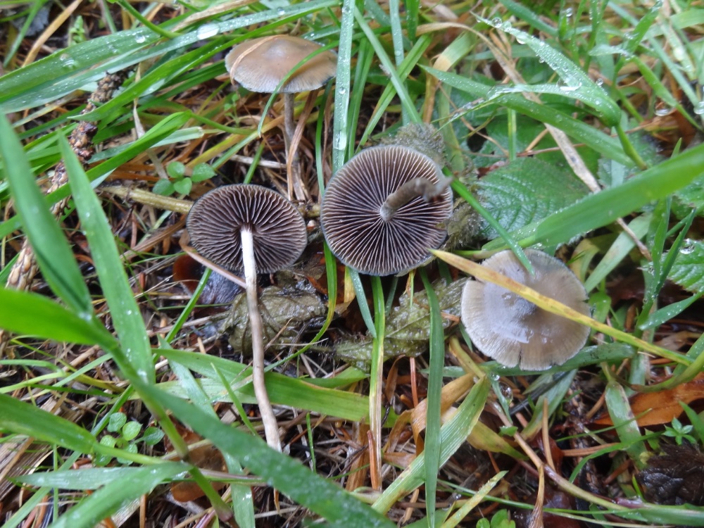1+2 Psil. semilanceata., stellenweise sehr häufig, spez. in Büscheln von Rasenschmiele (Deschampsia cespitosa)